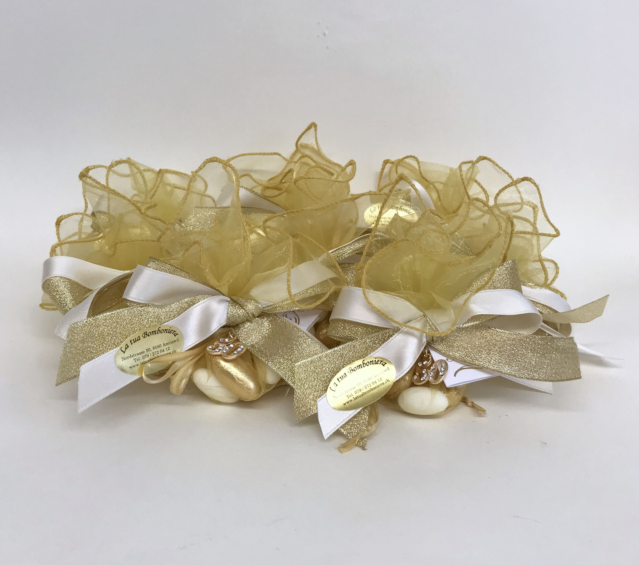 >>Säckchen mit Applikationen und Zuckermandeln / Sacchetto portaconfetti