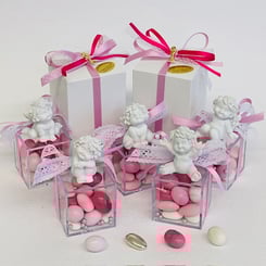 22-82151 Bomboniera Igor Engel sitzend 4St sortiert aus Resin. Plexiglas 6x6x6cm.