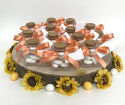 Inkl.: Bomboniera Kärtchen personalisiert, mit 7 Mandeln gefüllt. Bandfarben (auf Anfrage) möglich.