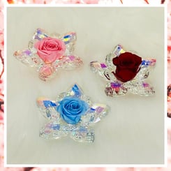 Bomboniera Kristallblume Borealis mit Stabilisierte Rose H. 3.5.x7cm