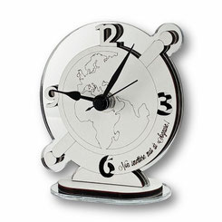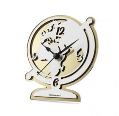 DC6944 Bomboniera Globus-Uhr aus Holz in weiss und Plexiglas