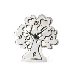 DC6952 Bomboniera Lebensbaum-Uhr aus Holz in weiss und Plexiglas in Silber H. 14x14cm.