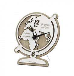 DC6944 Bomboniera Globus-Uhr aus Holz in weiss und tortora