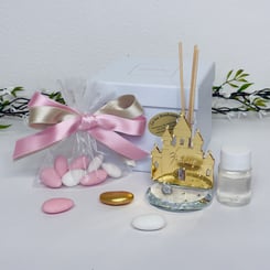 DC24078 Bomboniera Duftspender-Schloss aus Kristall und Plexiglas in Gold H.8x6cm.
