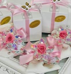 Bomboniera Kristallblume Borealis mit Stabilisierte Rose H. 3.5.x7cm
