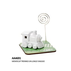 AA4691 Bomboniera Zug Memo Clip auf Holzsockel H. 8x8cm.