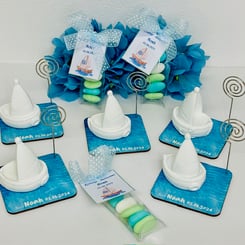 AA4693 Bomboniera Segel Memo Clip auf Holzsockel H. 8x8cm.