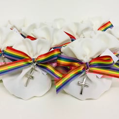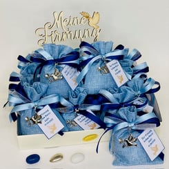 Inkl.: Tag personalisiert mit Verschiedene Motiven, Name und Datum bedruckt, mit 7 Mandeln gefüllt. Bandfarben und Mandeln (auf Anfrage) möglich.