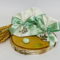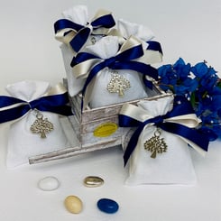 Inkl.: Bomboniera Kärtchen mit Name und Datum bedruckt, mit 7 Mandeln gefüllt.