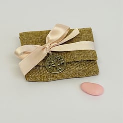 ST0746.AV Bomboniera Säckchen aus Stoff in beige h.12x10cm.