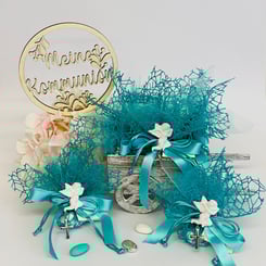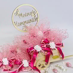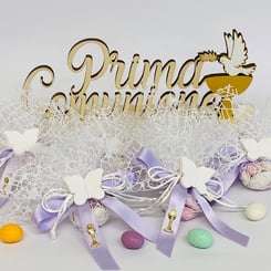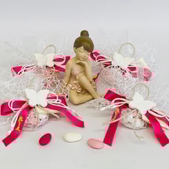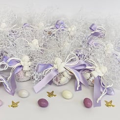 Inkl.: Bomboniera Kärtchen mit Name und Datum bedruckt, mit Mandel, Tenerezze aus Schokoladen und Marshmallow gefüllt.