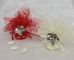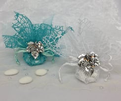 Inkl.: Bomboniera Kärtchen mit Name und Datum bedruckt, Tüll mit 5 Mandeln gefüllt.