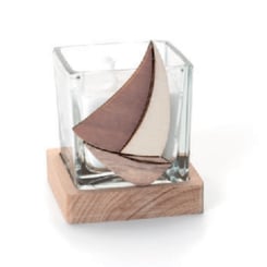 AA3092 Bomboniera Segelboot aus Holz mit Teelicht aus Glas ca.7.5x6.5x6.5cm.