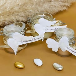 Inkl.: Bomboniera Kärtchen mit Name und Datum bedruckt, PVC mit 5 Mandeln gefüllt.
