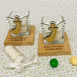 AA3333 Bomboniera Engel Love aus Holz mit Teelicht aus Glas ca.7x8.5x11cm.