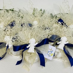 Inkl.: Bomboniera Kärtchen mit Name und Datum bedruckt, mit 5 Mandeln gefüllt.
