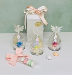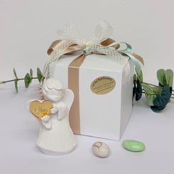 Inkl.: Schachtel, Bomboniera Kärtchen mit Name(n), Datum und Anlass bedruckt, PVC mit 5 Zuckermandeln gefüllt.