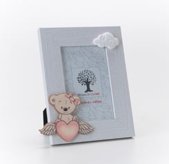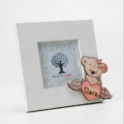 AA3402 Bomboniera Fotorahmen mit einer Bär-Applikation aus Holz.