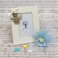 Bomboniera Fotorahmen mit einer Bär-Applikation aus Holz.
