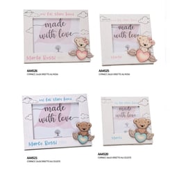 AA3403 Bomboniera Fotorahmen mit einer Bär-Applikation aus Holz.