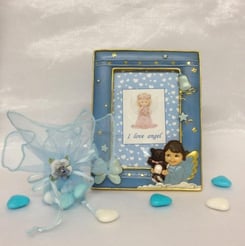 Bomboniera Engel Fotorahmen in blau h 19cm