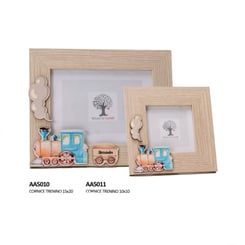 Bomboniera Fotorahmen mit einer Zug-Applikation aus Holz.