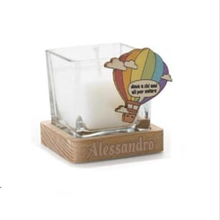 AA4097 Bomboniera Heissluftballon aus Holz mit Teelicht aus Glas