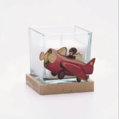 AA3539 Bomboniera Flugzeug aus Holz mit Teelicht aus Glas ca.7x7x7cm.