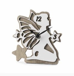 DC7016 Bomboniera Fee-Uhr aus Holz in weiss und tortora H. 14x14cm.