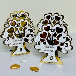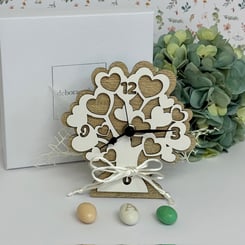 DC6952 Bomboniera Lebensbaum-Uhr aus Holz in weiss und tortora