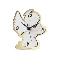 DC7025 Bomboniera Engel-Uhr aus Holz in weiss und Plexiglas H. 14x14cm.