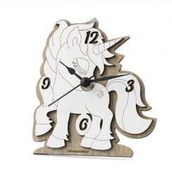 DC7087 Bomboniera Einhorn-Uhr aus Holz in weiss und plexiglas