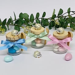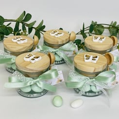 Inkl.: Personalisiert, Bomboniera Kärtchen mit Name(n), Datum und Anlass bedruckt, mit 5 Zuckermandeln gefüllt.