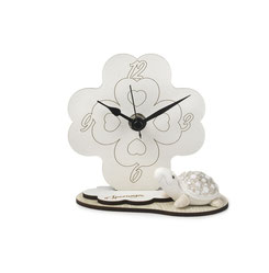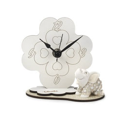 DC24145 Bomboniera Kleeblatt-Uhr aus Holz & Schildkröte aus Resin
