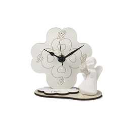 DC24124 Bomboniera Kleeblatt-Uhr aus Holz & Engel aus Resin