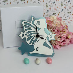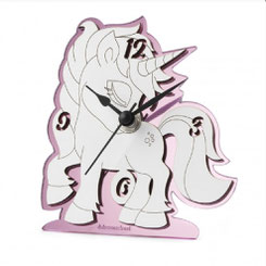 DC7087 Bomboniera Einhorn-Uhr aus Holz in weiss und plexiglas