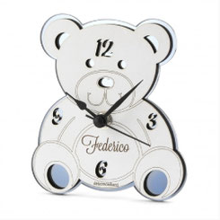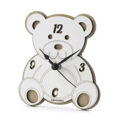 DC7096 Bomboniera Bär-Uhr aus Holz in weiss und tortora