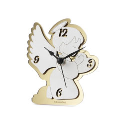 DC7025 Bomboniera Engel-Uhr aus Holz in weiss und tortora H. 14x14cm.