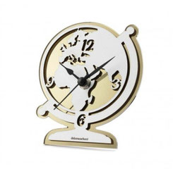 DC6944 Bomboniera Globus-Uhr aus Holz in weiss und plexiglas