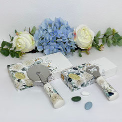 IC1288 Pizzaschneider Blooming Love mit Eukalyptus Motiv aus Porzellan und Edelstahl H.15.5cm / Tagliapizza porcellana.