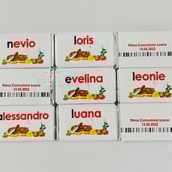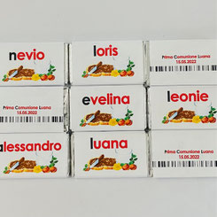 Personalisierte Lunch-Schokoladen für verschiedene Anlässe, mit Nutella-Motiv und Wunschtext bedruckt.